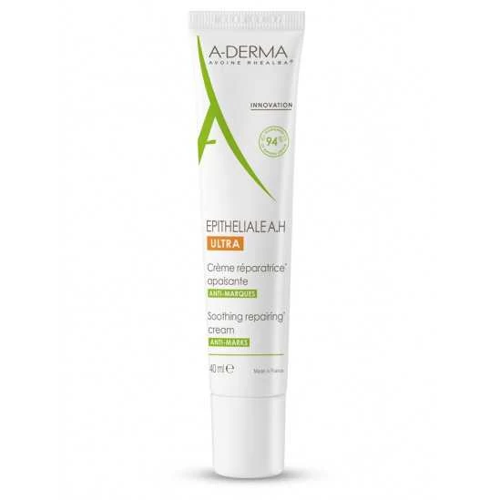 - Aderma Epitheliale A.H Ultra Crème Réparatrice Apaisante 100 ml est un soin indiqué pour les peaux fragilisées à la suite d’actes dermatologiques superficielles et atteintes superficielles de l’épiderme qui peuvent laisser des marques cutanées. Grâce à l’extrait naturel de Liane du Pérou et à l’actif exclusif breveté Cicahyalumide, sa formule innovante possède une triple action :
