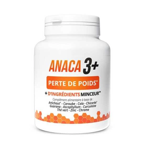 Anaca3 + Perte de Poids 120 Gélules est un complément alimentaire sous forme de gélules à base de plantes, de curcumine et de minéraux.