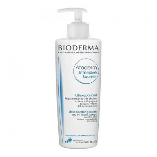 Bioderma Atoderm Intensive Baume Ultra-Apaisant 500 ml format familial, est un soin ultra-apaisant et ultra-riche recommandé pour les peaux sensibles très sèches irritées à atopiques de toute la famille (adultes, enfants, nourrissons). Anti-démangeaisons, ce baume restaure et relipide la peau agissant sur les dysfonctionnements biologiques. Il stoppe les démangeaisons et diminue l’incitation au grattage grâce à son actif dermatologique anti-prurit PEA. Il calme immédiatement les irritations grâce au béta-sistostérol et au zinc. Le Lipigenium composé de biolipides, permet de reconstruire durablement la barrière cutanée. En effet, ces biolipides s’insèrent dans la peau et reconstituent le film protecteur. Le Skin Barrier Therapy permet de limiter l’adhésion et la prolifération du staphylocoque doré et la pénétration d’allergènes, facteurs d’accélération de la sécheresse. Assainie, la peau est apaisée et réparée. Sans parfum, excellente tolérance, non comédogène. Sans paraben. Hypoallergénique. Attention : La vente des produits du Laboratoire Bioderma est limitée à l’Espace Economique Européen et à 6 produits identiques par jour et par client.