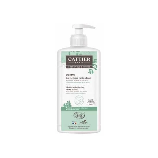 Cattier Dermo Lait Corps Relipidant Bio 500 ml est un soin corporel formulé pour hydrater, apaiser et réparer les peaux sèches à très sèches, fragilisées et à tendance atopique.