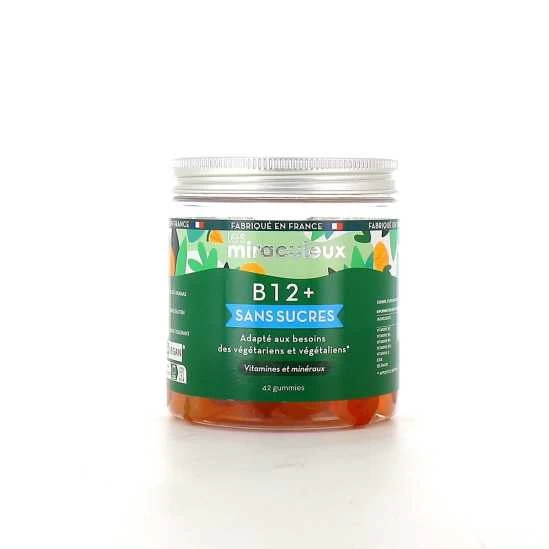 Présentation disponible pour les gummies Les Miraculeux Vitamine B12 sur notre pharmacie en ligne : Pot de 42 gummies sans sucres
